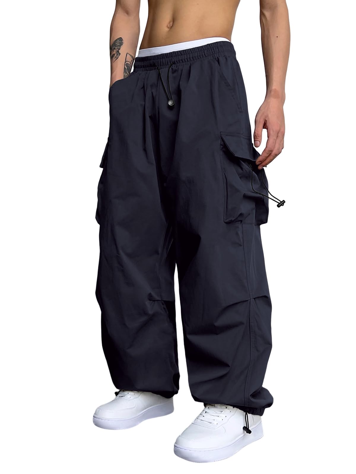 Men Casual Baggy Cargo Pants Unisex Street Y2K Pants Drawstring Trouser