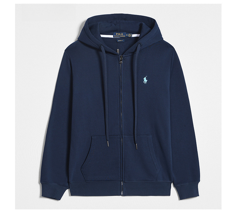 Men's Casual Solid-color Embroidered Zipper Pullover Hoodie