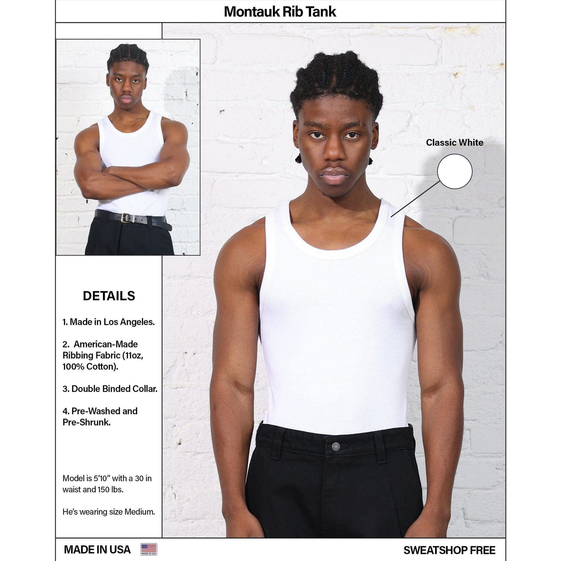 The Montauk Rib Tank isn’t your average tank top. Knit in Los Angeles by the same textile partner behind our signature tees, it’s made from a premium ribbed american-grown cotton with a structured hand-feel and natural breathability. The weight is perfectly balanced — light enough for the day, substantial enough to layer under a button-up at night.
